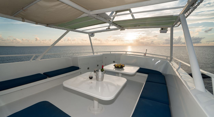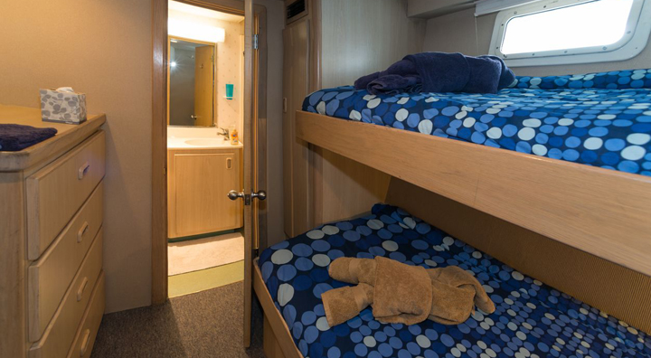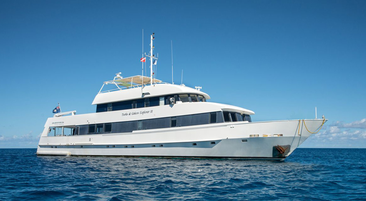 The Turks & Caicos Explorer II liveaboard is a quality ship that schedules year-round dive trips to the pristine waters of Turks & Caicos. She caters to 20 guests in 10 en-suite and air-conditioned staterooms. Three cabins are located on the lower deck, each featuring twin bunk beds. On the main deck are 5 twin or queen-bed cabins, and the boat deck is home to the two VIP cabins. On the main deck is the air-conditioned main salon, where delicious dishes, a mix of locally inspired recipes, American favorites, and gourmet creations, are freshly prepared by the chef and served. Unlimited soda, juice, tea, coffee, and, after diving, alcohol, beer, and wine are included during your stay. The flybridge features a covered seating area with a barbecue, wet bar, and helm station, while the sun deck offers comfortable loungers for guests to relax.